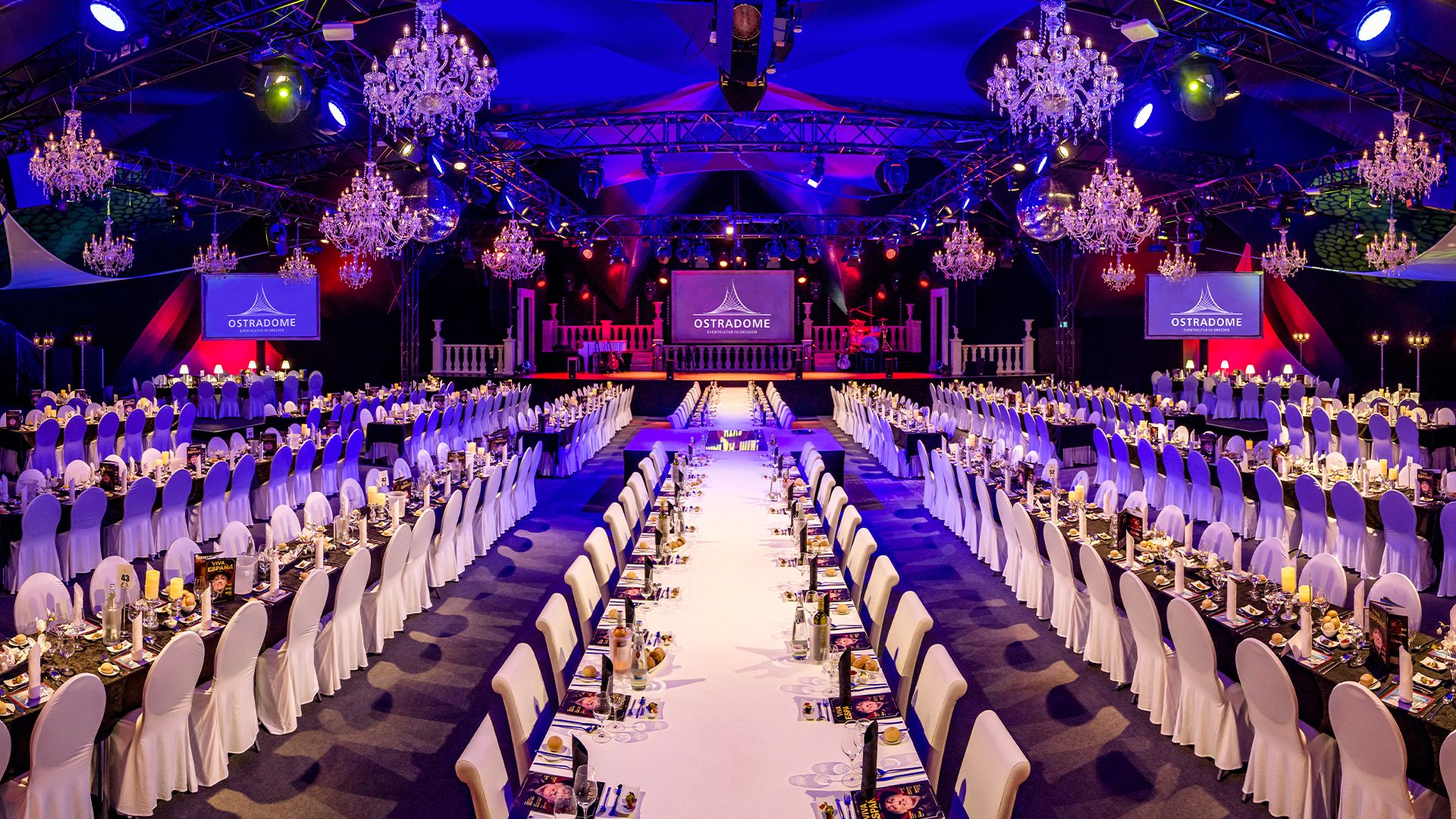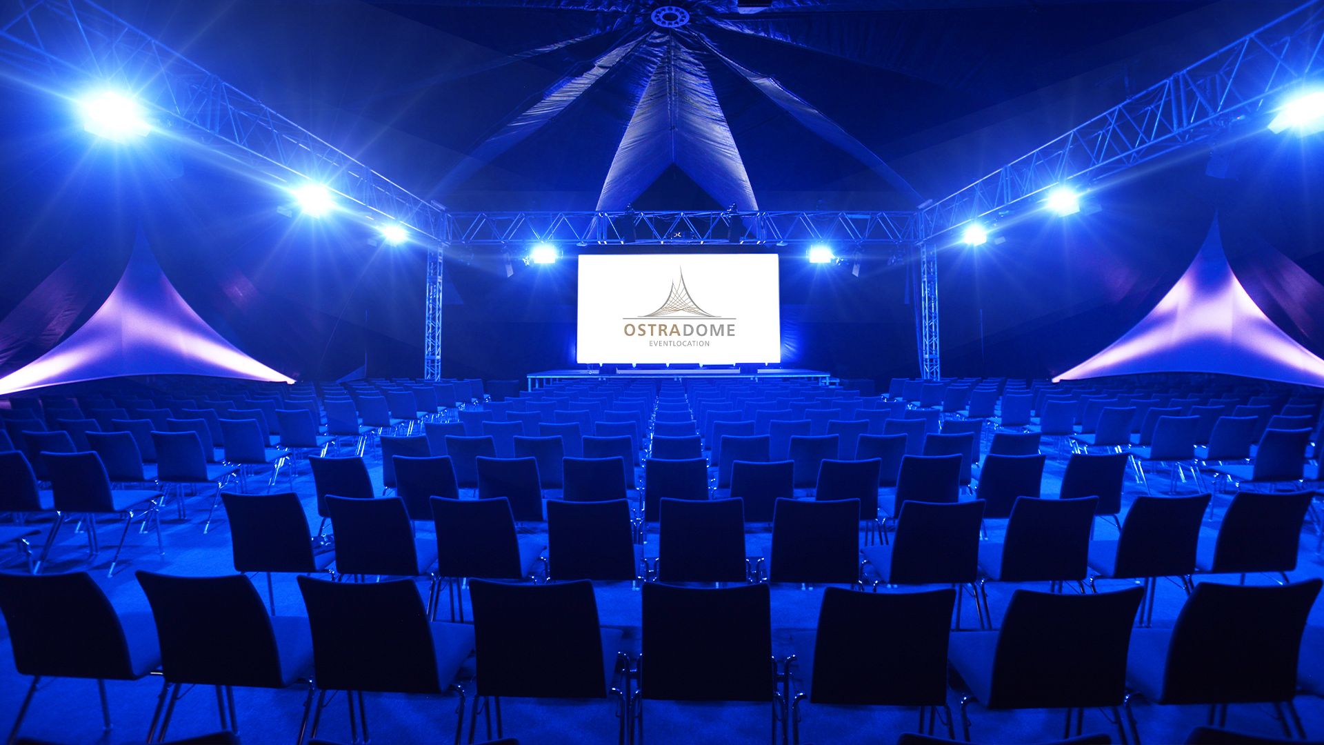 Der OSTRA-DOME bietet Platz für bis zu 1.050 Personen in Reihenbestuhlung, während die OSTRA-STUDIOS kleinere Gruppen und Workshops optimal bedienen.