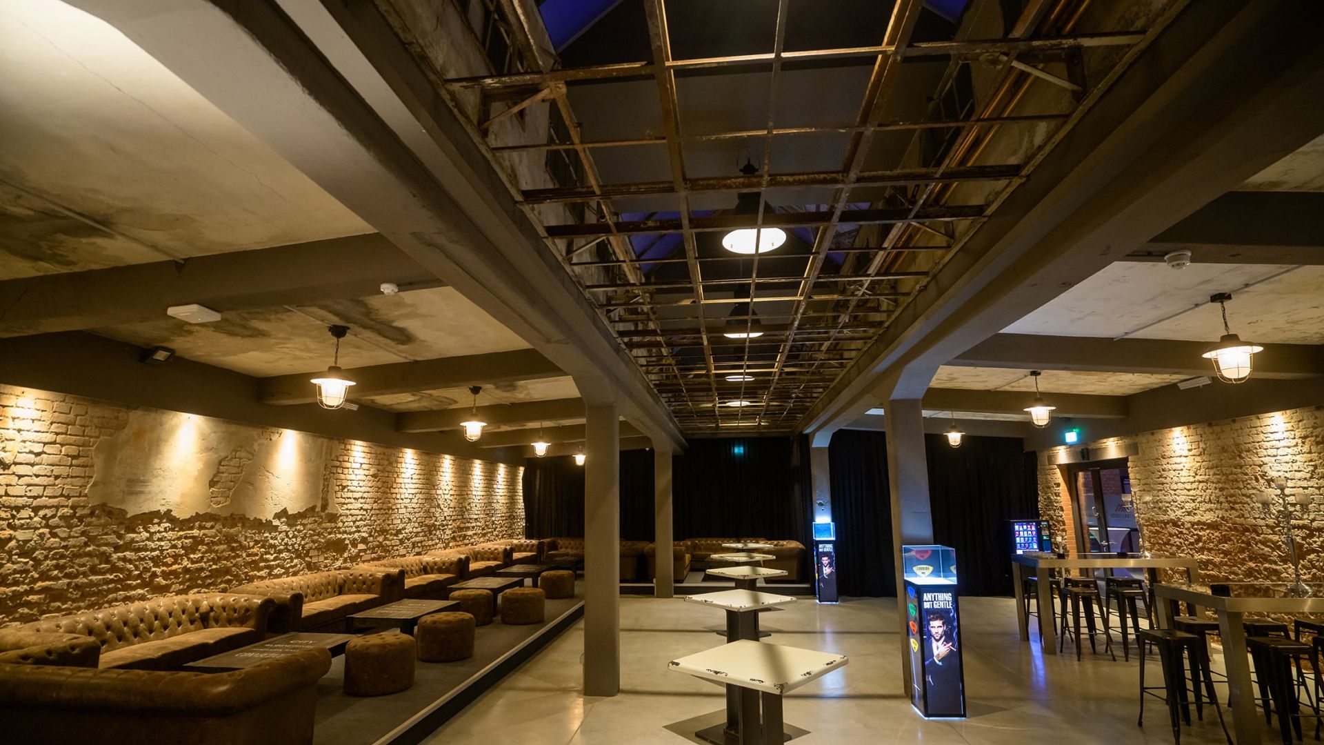 Der OSTRA-DOME bietet 1.500 m² säulenfreie Fläche mit moderner Licht- und Tontechnik sowie einer variablen Bühne. Das Trennwandsystem der OSTRA-STUDIOS ermöglicht flexible Anpassungen für Workshops und Events.